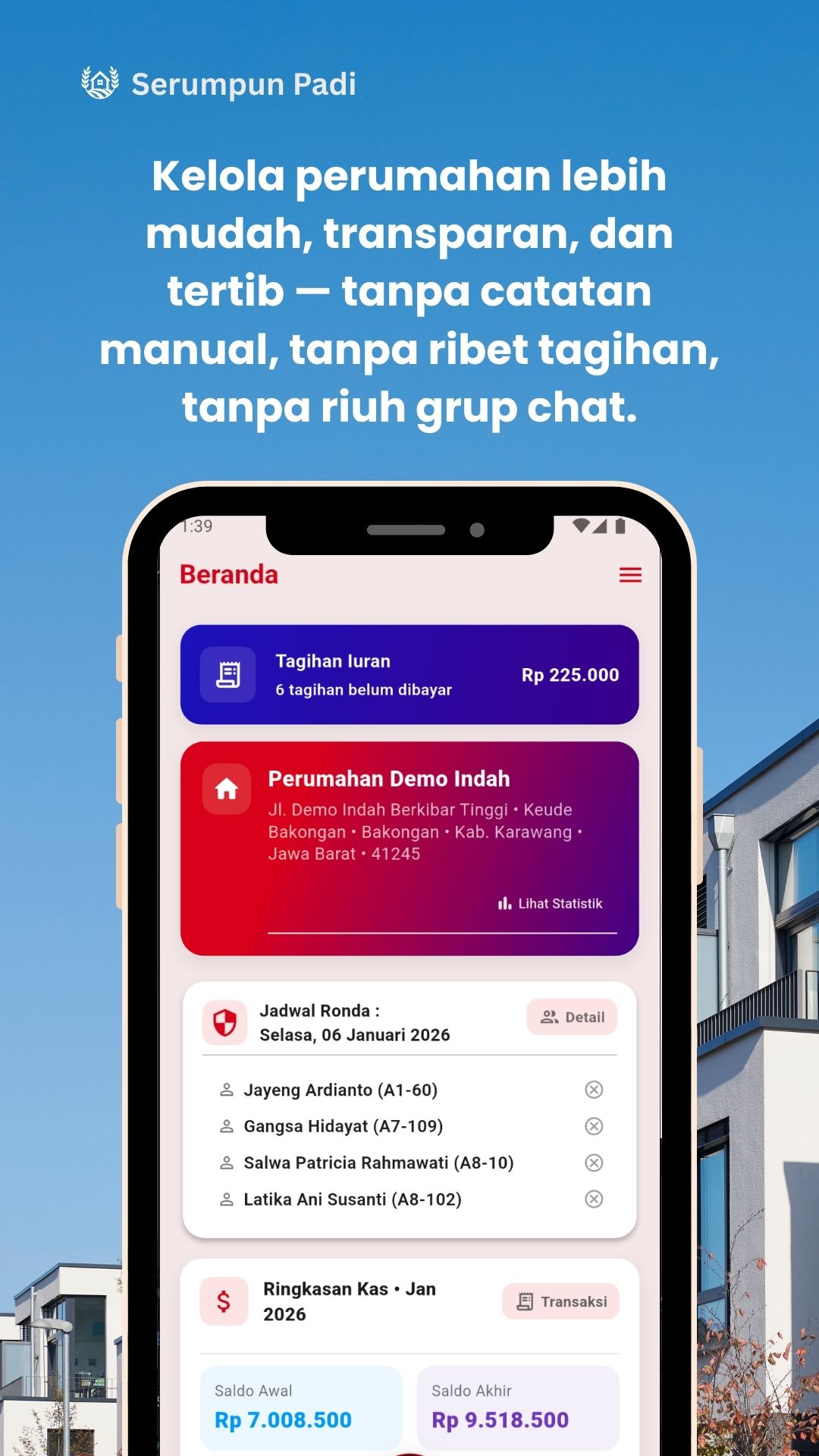 Serumpun Padi adalah aplikasi manajemen perumahan berbasis digital yang membantu warga, pengurus RT/RW, dan developer mengelola data, iuran, keuangan, dan informasi secara lebih mudah dan transparan.